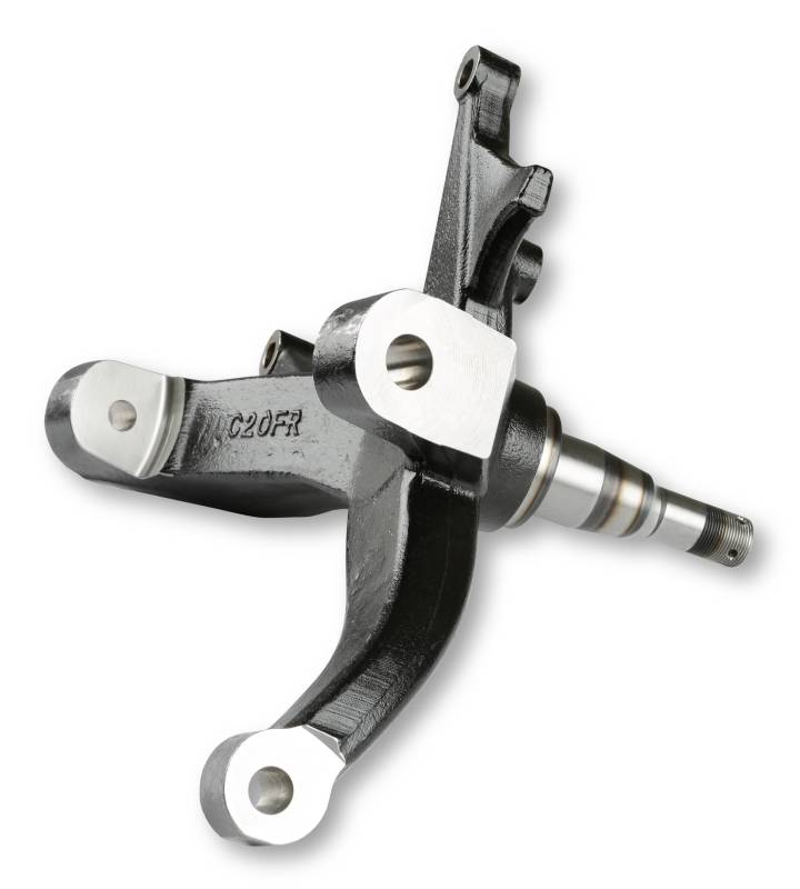 REKUDO spindles are one part of a fully engineered suspension and brake system for the 1970-1981 Chevrolet Camaro & Pontiac Firebird. This suspension system is an auto-cross inspired modern suspension system that retains the original equipment (OE) appearance & strength with taller than stock spindles for improved camber gain & lowers the front of the vehicle by 1". These spindles must be used with REKUDO Control Arms RK100-21 and REKUDO JL8 front brake system (calipers, rotors, hubs, dust shields, and brake hoses) Spindles are forged 4140 chrome-moly steel construction with Black EDP Coating. Spindles sold in pairs.\nJL8 Brakes Require 15" Minimum Diameter Wheels.\nThese spindles are for use with the following additional components of this suspension system & front brake system (each part is sold separately):\n- Front Control Arms RK100-21 (complete set - upper & lower)\n- Front Springs RK200-11 (1" lowered pair), or RK200-12 (2" lowered pair)\n- Front Shocks RK300-03 (2 required)\n- Front Sway Bar RK500-02\n- Front Rotors RK400-06 (pair)\n- Front Hubs RK600-01 (2 required)\n- Front JL8 Brake Dust Shields (pair)\n- Front JL8 Calipers RK400-10, RK400-12, RK400-19, RK400-21, or 1968-1982 C3 Corvette Factory Style Front Calipers\n- Rear Leaf Springs RK200-02 (pair)\n- Rear Shackles RK200-08 (set)\n- Shocks RK300-04 (2 required)\nThese spindles must be used with Control Arms RK100-21 (full Set) (upper RK100-21U & lower RK100-21L) for improved camber curve - see Camber Curve Graph. See the Attached Alignment Recommendations for - for Daily Driver, Weekend Warrior, and Track Only vehicle applications.\nThe 4-wheel disc brake upgrade (Corvette style 4-piston calipers for both front and rear) was offered on the 1968 Camaro as a "Heavy Duty Service" package sold through the parts counter at Chevrolet car dealers. In 1969, the 4-piston disc brakes could be ordered as a Regular Production Option (RPO) JL8 package on production vehicles. These high-end brakes were made available to support racing programs like the Sports Car Club of America (SCCA), and Trans-Am road racing series. This unique brake option is very rare and was only sold on about 200 production vehicles.