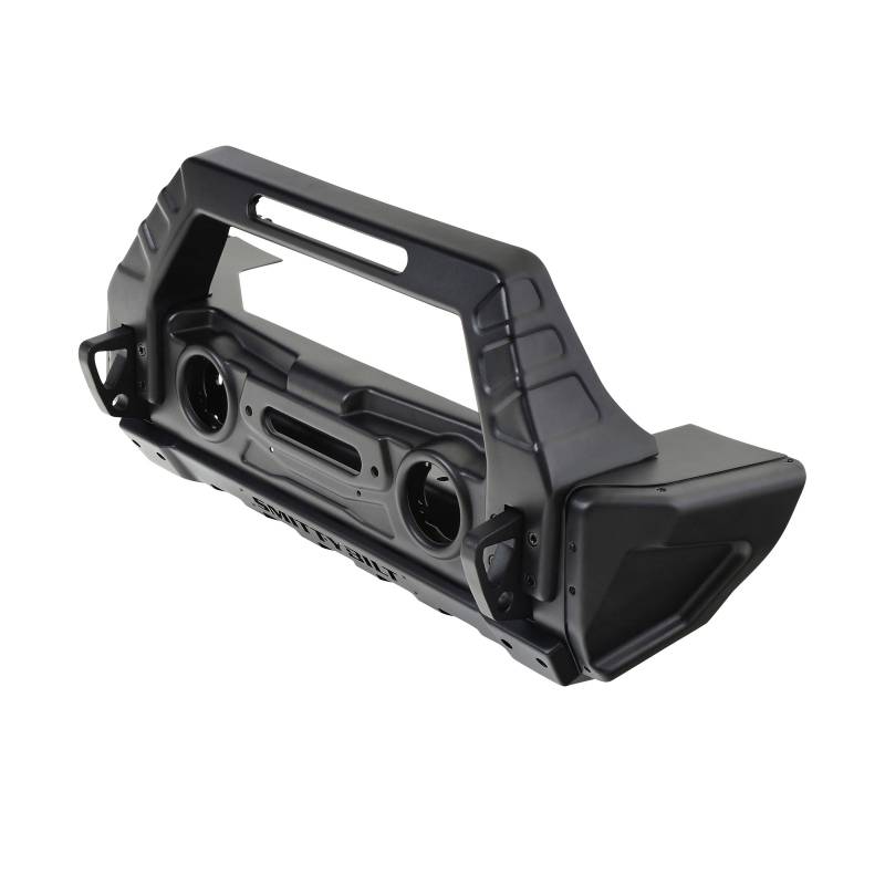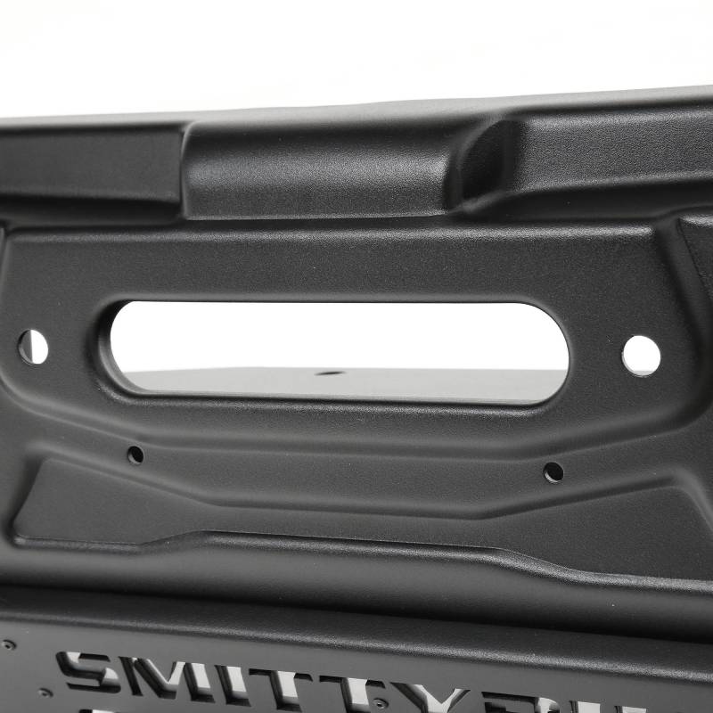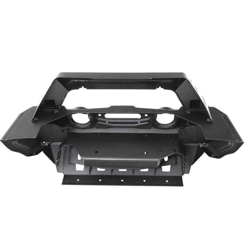 The Smittybilt Stryker Modular Bumper for 2007+ Jeep Wrangler JK/JL and 2020+ Jeep Gladiator JT combines strength, versatility, and modern design for optimal off-roading performance. Made from 3mm cold-rolled steel, its aggressive stubby design provides weight savings while offering full-protection bumper options. Equipped with a bolt-on internal winch plate (accommodating up to 12k lbs), integrated lift points, and 3/4" D-ring mounts, it ensures reliable recovery. The bumper also features a removable overrider for a single row LED light bar, a heavy-duty reinforced skid plate for added protection, and provisions for optional side wings and additional lighting, all backed by a Limited Lifetime Structural Warranty and a 5-Year Finish Warranty.
