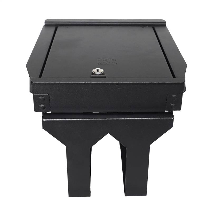 Console Safe | Ford F150 | Standard Key | 2021-2024 Tuffy designs and manufactures the finest console safes in the industry. Tuffy continues this legacy with the new console safe for the 2021 Ford F-Series flow-through center security console safe. It maintains a completely stock look including full use of the factory accessory tray, armrest and lid. Featuring a durable texture powder coat finish, the safe comes ready to install in just a few minutes without drilling.