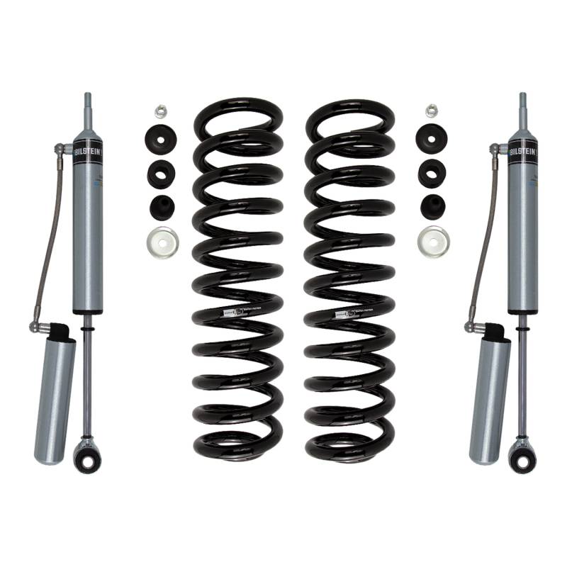 B8 5162 - Suspension Leveling Kit Bilstein B8 5162 suspension kit is a high performance leveling kit which provides more ground clearance, allows for larger tires, and increases wheel travel. The Bilstein B8 5162 suspension kit is for front applications and consists of (2) B8 5160 shock absorbers combined with (2) matched coil springs. This simple yet effective kit will bolt into the factory locations with no modifications. The Bilstein B8 5162 suspension kit provides a smooth and stable ride both on and off-road. 46mm monotube design ensures consistent, fade-free performance in all conditions Self-adjusting deflective disc valving reacts immediately to surface changes enabling maximum vehicle control Remote reservoir increases shock oil capacity for greater heat dissipation