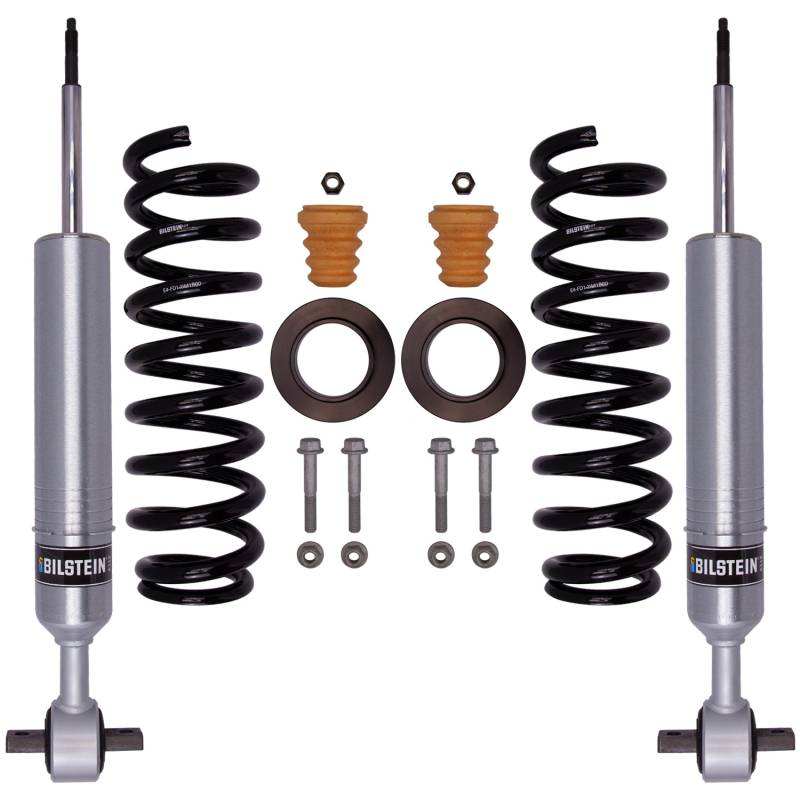 B8 6112 - Suspension Kit Bilstein B8 6112 leveling kits are designed to provide more ground clearance, allow for larger tires, and increase wheel travel. Multiple snap-ring grooves in the body allow for different spring seat positions, providing 0-2.75 inches of front lift (depending on application). These kits consist of (2) 60mm shock absorbers combined with (2) custom matched cold wound coil springs and (2) billet aluminum spring seats. The large 2.65-in OD body and 60mm digressive piston allows for increased damping control for optimal on-road and off-road capabilities. Experience the legendary Bilstein off-road experience with the best direct fit'spring and shock kit for your light truck or SUV. Large 60mm body for increased oil capacity, cooling, and long-term durability 60mm digressive piston improves ride comfort and control over rough terrain Vehicle specific tuning