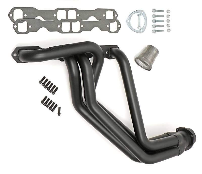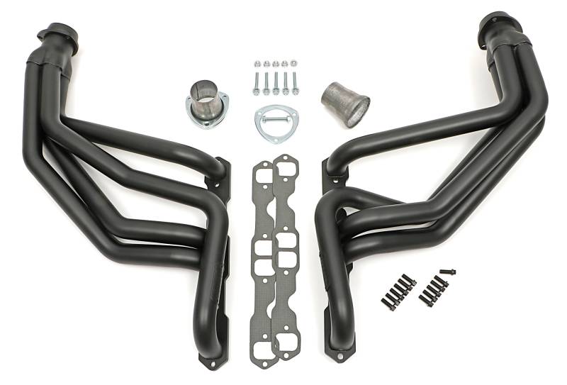 Heavy-Duty ELITE Header Construction With Thick 3/8 in. Flanges and 14g Primary Tubes To Hold Up To The Added Tortures Of High-Performance and Truck Engines. Thermal Coating Keeps More Heat In The Headers To Keep Underhood Temps Down and Protect Against Corrosion. Ball & Socket Collector Design requires No Gasket, and Allows For More Exhaust System Misalignment than Old School, Gasket-Style Header Collectors Includes All The Necessary Mounting Hardware, Gaskets and Reducers (exhaust adapters) Limted Lifetime Warranty On Construction, Five Year Warranty on Factory-Applied Header Coating!Details