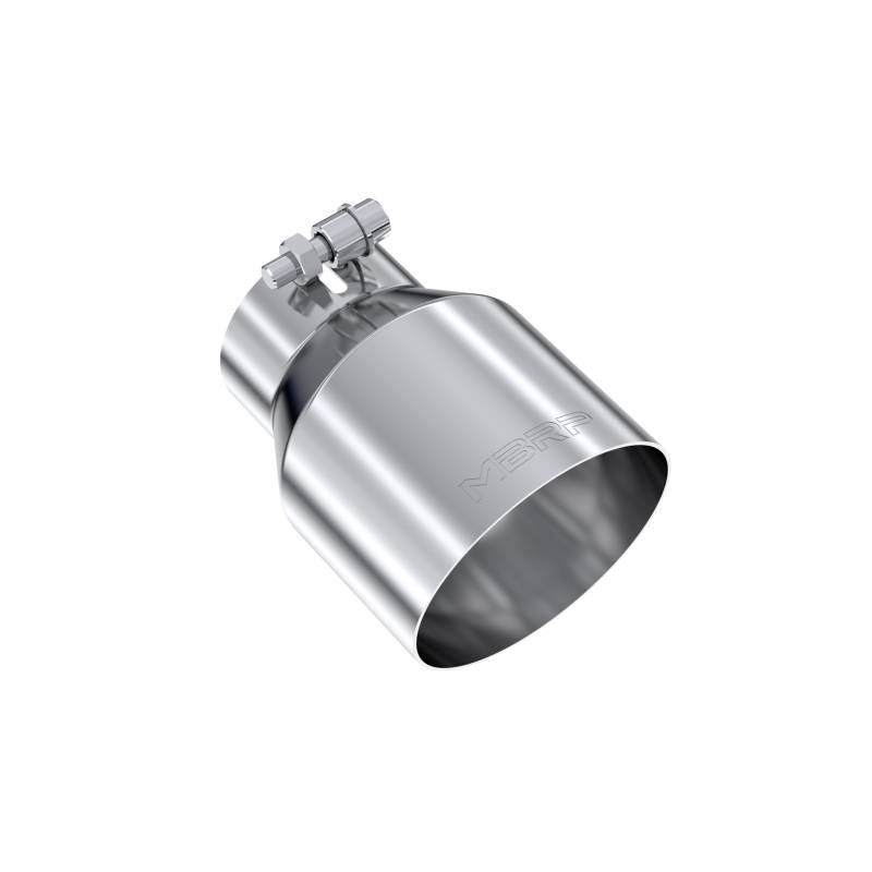 3in. Inlet Exhaust Tip. T304 Stainless Steel The exhaust tip is the crowning touch to your performance exhaust. It is your opportunity to really show off your personal style. That's why MBRP offers such a wide assortment of high quality, bolt on tips, because everybody has their own idea of style. MBRP offers T304 polished stainless, Black coated, Burnt End and Carbon Fiber tip options in various sizes. The tips are universal fit'so be sure to measure your tail pipes outside diameter and match it to the MBRP tip INLET diameter before ordering. No Weld Installation.