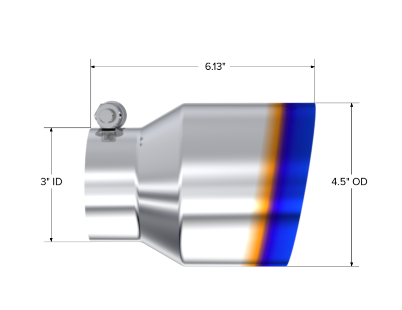 3" Inlet Exhaust Tip. T304 Stainless Steel, Burnt End The exhaust tip is the crowning touch to your performance exhaust. It is your opportunity to really show off your personal style. That's why MBRP offers such a wide assortment of high quality, bolt on tips, because everybody has their own idea of style. MBRP offers T304 polished stainless, Black coated, Burnt End and Carbon Fiber tip options in various sizes. The tips are universal fit'so be sure to measure your tail pipes outside diameter and match it to the MBRP tip INLET diameter before ordering. No Weld Installation.