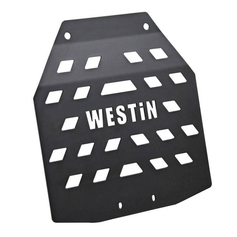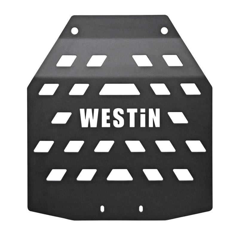 Transfer Case Skid Plate Westin's Transfer Case Skid Plate protects the transfer case from damage during off-road driving or rock crawling. The 7 gauge steel plate features a laser cut WESTIN logo and other openings that help minimize weight, and has formed edges for maximum strength. Direct bolt on installation for Jeep Gladiator, 2 door or 4 door Wrangler JK, and JL. Optional gas tank, oil pan, evap canister, and muffler skid plates available (sold separately). MATERIALS: The Westin Skid Plate is made of heavy-duty 10 gauge HRPO steel. UNIQUE DESIGN: The Skid Plate is a unique design that features vent holes that reduce weight while allowing airflow to the transmission and oil pan, while stamped reinforcing ribs add durability and strength. FEATURES: Allows easy access to replace oil filters, and access to the drain plug. INCLUDED: Everything needed for installation is included with the skid plate.