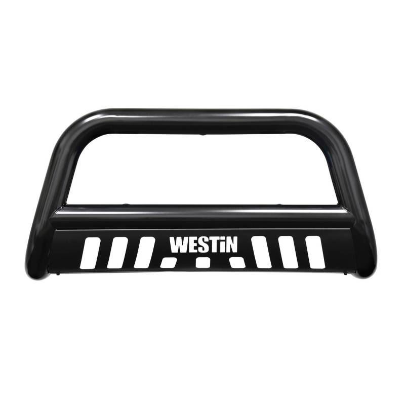 E-Series Bull Bar Westin(TM) E-Series Bull Bars are a front-end light bar designed for trucks and larger model SUVs. It is made of 3 diameter polished stainless steel tube. It mounts utilizing existing vehicle mounting points and installation does not require any drilling to the vehicle frame. Comes complete with mounting kit the Westin(TM) E-Series Bull Bar provides a mounting point for 2 auxiliary lights up to 6 in diameter. It features a die-cut Westin(TM) block logo design on the stainless steel skid plate unique to the Westin(TM) E-Series Bull Bar. Mount kit included Made of 3" diameter stainless steel tubing Stainless bull bar comes with brushed skid plate Black bull bar comes with textured black skid plate Fully welded cross tube