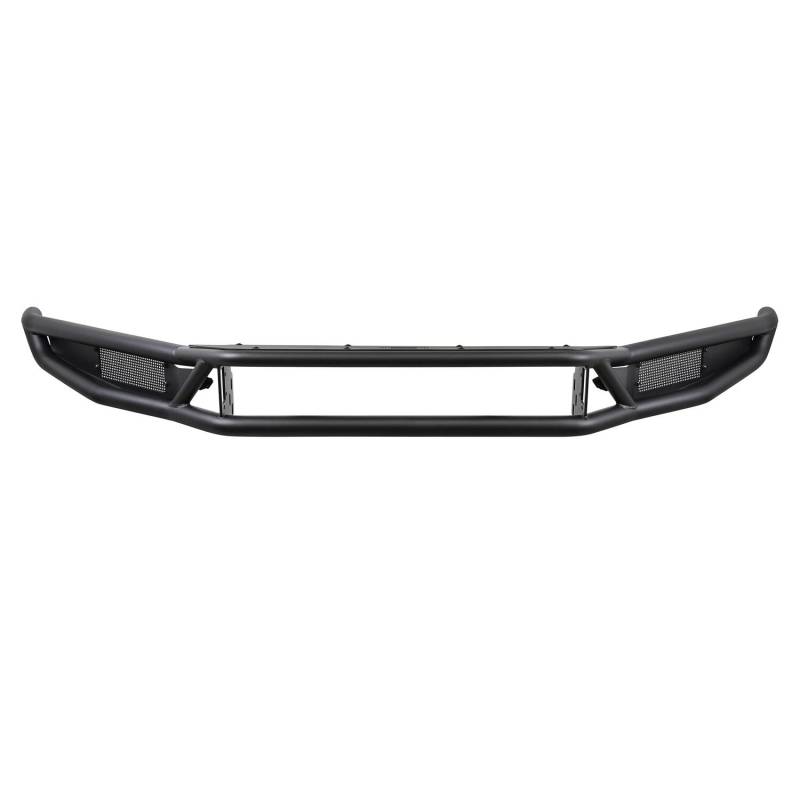 Outlaw Front Bumper Westins Outlaw Front Bumper is made of strong 14 gauge steel that gives your truck the front end style, durability and function it needs. It features a 2in. diameter tube frame with 1.5in. diameter center tubes, and integrated bolt-on LED light mounts for up to two single or one double row 30in. LED bar. Add an Outlaw Skid Plate or Outlaw LED Light Kit to enhance your vehicles look and strength on and off the road. Round LED Light Kit with Westin Auxiliary Lights or Square LED Light Kit with Westin HyperQ Auxiliary Lights sold separately. Mount kit included. Available in textured black finish. Mount kit included Made of 14 gauge steel 2" diameter tube frame with 1 1/2" diameter center tubes Integrated bolt-on LED light mounts for two single or one double row 30" LED Bar Optional Outlaw Skid Plate - sold separately