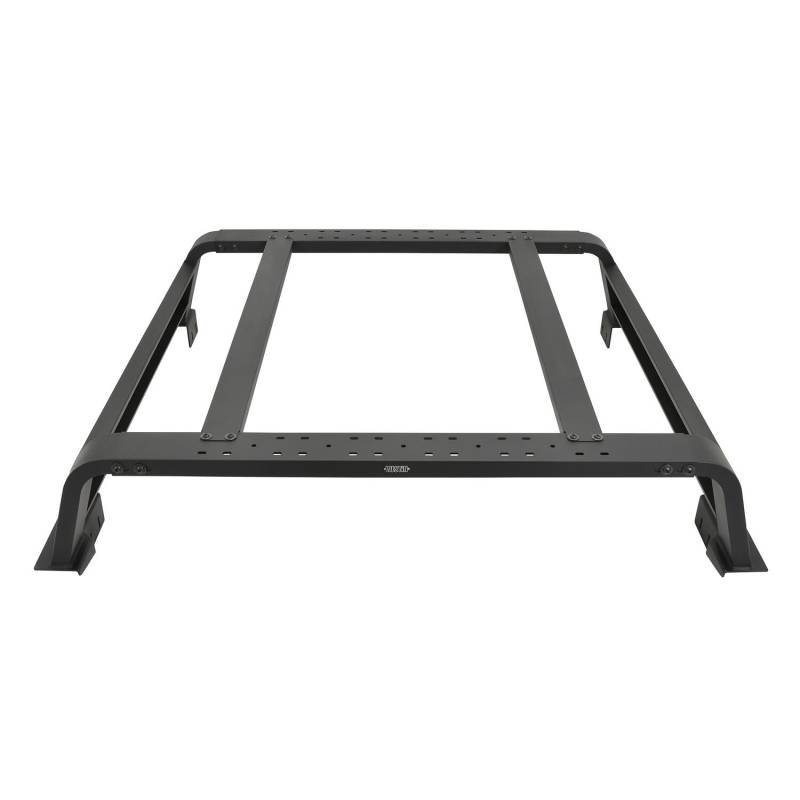 Overland Cargo Rack Maximize the cargo space and storage capacity of your truck with an all new Overland Cargo Rack from Westin. This multi-purpose bed rack "cargo management system" allows for a wide variety of off-road and overland gear storage, such as off-road jacks, RotoPaxTM gas cans , traction boards, shovels, rooftop tents, LED lighting and storage boxes, with multiple mounting positions and options. Constructed of 4in. rectangular tubing and 14 gauge steel, this unique design utilizes the OEM bed rails for a no-drill mounting which is incredibly strong, but lightweight and easy to install. The low profile design was engineered to keep the cargo gear below the cab roofline, positioning most roof top tents to be flush with the top of the cab roof to reduce wind resistance and allow for easier garage parking. You can choose your preferred rack length (available in either 45in. or 57in. options), and top support rails which can be mounted in multiple positions as needed. It can also accommodate a wide variety of roof top tent footprints, making the Overland Cargo Rack perfect for any back country adventure. Low profile design keeps cargo gear below cab roofline Constructed of 14 gauge for strength and durability Multi-purpose "cargo management system" allows variety of gear storage Unique design Utilizes OEM bed rails for easy installation Engineered for most roof top tents
