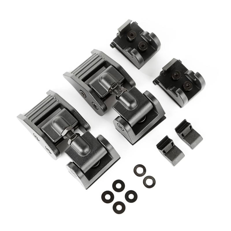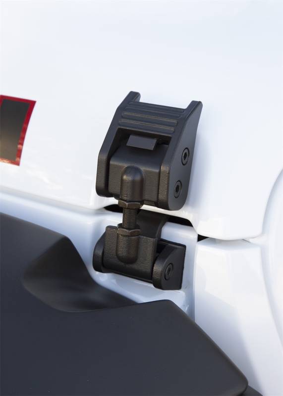Hood Catch Kit, Textured Black; 2018-21 Jeep Wrangler / 20-21 Gladiator Rugged Ridge Aluminum Hood Catches are one of the simplest upgrades available for your Wrangler JL and Gladiator JT, and what a difference they make! Constructed from high-quality cast aluminum and engineered with an adjustable torsion rod for a precise fit, eliminating the possibility of hood flutter while adding a rugged muscular accent. Available in Black, Textured Black and Silver powder coat finishes, so there?s a Rugged Ridge Aluminum Hood Catch for every taste. Installation is a breeze with simple hand tools making them a must for your Jeep. US Patent D692,290