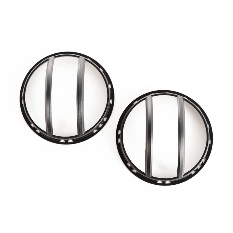 Elite Euro Guard Kit, Pivotal, Headlight, Black; 07-18 Wrangler JK/JKU The Rugged Ridge Pivotal Headlight Euro Guards special patent-pending design allows for the guard to be rotated on the headlight for a variety of looks. The angry attitude of the Rugged Ridge Spartan Grille is amplified by the angled light guards, allowing you to make your own unique automotive expression. The Pivotal Euro Guard still retains the classic off-road styling of the original headlight Euro Guard but benefits from solid cast aluminum construction for a lightweight, but seriously sturdy, option in headlight protection, on and off-road. Pivotal Headlight Guards feature a premium textured black powder coat finish to accent any exterior color (Red Powder Coat and Raw Aluminum finishes are COMING SOON!). Installs easily in minutes using factory hardware and replaces the factory headlight retaining ring. (Sold in pairs) Patent Pending.