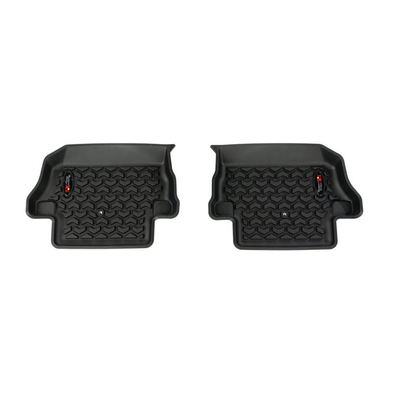 Floor Liner, Rear; Black, 2018-2020 Jeep Wrangler JL 2 Dr Rugged Ridge Floor liners provide complete protection for the cabin floor of your vehicle while keeping it looking factory fresh. Each liner is injection molded to keep its shape in all temperatures and is perfectly contoured to your vehicle's floor for precise secure fitment (floor hook attachment where applicable). The raised lip captures all spills, water and debris keeping your interior pristine. The Chevron-shape patented Deep Tread Technology channels liquid away from your shoes keeping them dry. Made of a durable OE-quality thermoplastic material that can withstand the rigor of daily abuse. Backed by our Limited Lifetime Warranty. Patent 8,173,369, D627,285