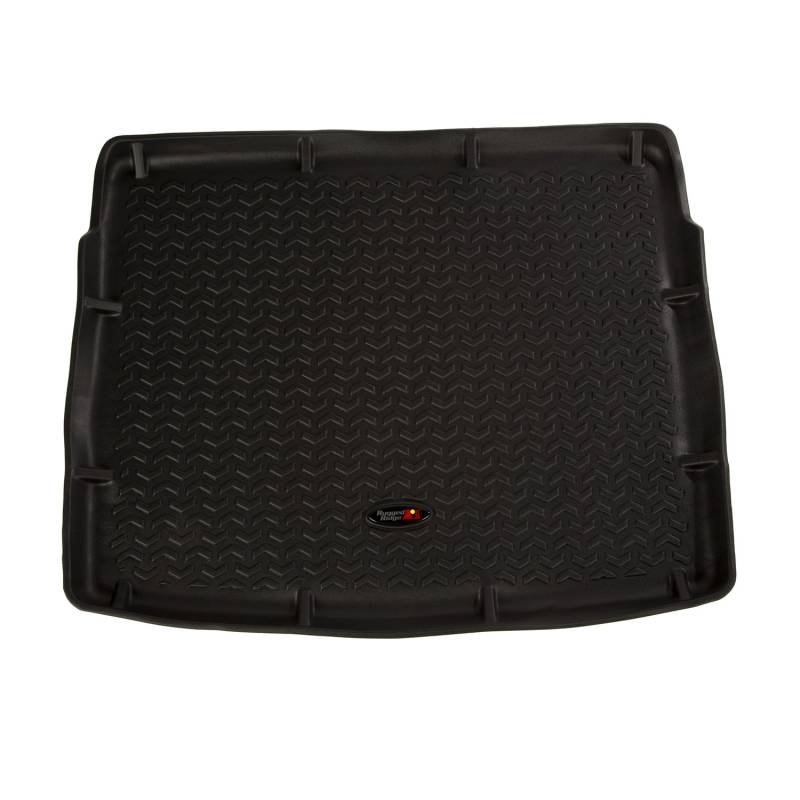 Floor Liner, Cargo; Black, 2018-2020 Jeep Compass Rugged Ridge Cargo liners provide complete protection for the cargo area of your vehicle to keep it looking factory fresh. Each liner is custom designed to fit your vehicle in every nook and cranny. The raised lip captures all spills, water and debris keeping your interior pristine. Made of a durable OE-quality Thermoplastic material these cargo liners can withstand the rigor of daily abuse. Backed by our Limited Lifetime Warranty. Features a chevron shape patented deep tread technology. Patent 8,163,369, D627,285