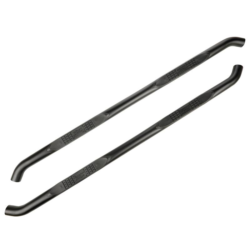 3-Inch Round Side Step, Fine Textured Black; 2020-2021 Jeep Gladiator JT These 3-inch round tube steps provide a clean look while still maintaining a muscular appearance that?s not dwarfed by oversized tires. Rugged Ridge steps feature .07-inch thick wall steel tube that is E-coated and treated to a beautiful fine-textured black powder coat finish for superior rust-resistance. All Rugged Ridge Tube steps are designed specifically for your model Jeep giving a truly custom fit. The included high-strength installation brackets are constructed of durable powder coated steel for long life and years of flex-free use. Each Tube Step includes UV-treated step pad inserts at every door, providing traction in any weather and easing vehicle entry and exit. Rugged Ridge Round Side Steps carry an impressive 300 lb. max weight limit. All installation hardware and easy-to-follow instructions are included.