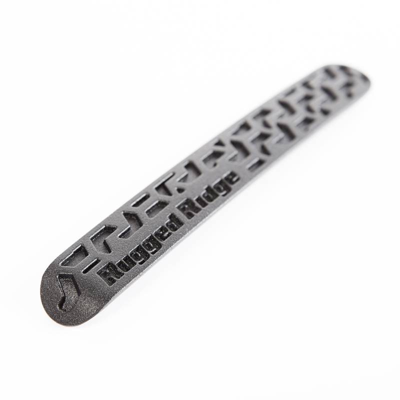 Elite Door Handle Inserts, Black Tread; 07-18 JK, 2 Door Bring a tasteful off-road accent to your JK with Rugged Ridge Elite Door Handle Inserts featuring a cool tread-inspired inlay. Each insert is made from lightweight cast aluminum and treated to a fine textured powder coat for durability and outstanding good looks. Kit Includes 3 inserts, for both doors and rear tailgate. These inserts install with ease with double-sided automotive tape. No sharp edges result in a comfort-fitting install.