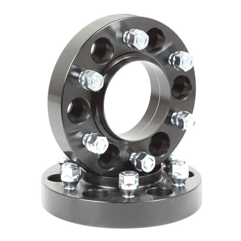Wheel Spacer Kit, Black, 1.25 Inch; 06-17 Ford Ranger Need to move your wheels out for a little extra space? This set of black hub-centric 1.25-inch wheel spacers from Rugged Ridge has a 6 x139.7 mm bolt pattern and 93 mm center bore. The hub-centric construction ensures the wheel is precisely centered on the axle, minimizing stress on wheel studs, and eliminating the added road vibration common with non-hub-centric designs. Installing these spacers will help fit wider tires, giving your Jeep a wider track and improved stability. Constructed of double-anodized, extra-thick, 6061-T6 aluminum for long life and extra corrosion resistance. All hardware is grade-8 for extra strength.