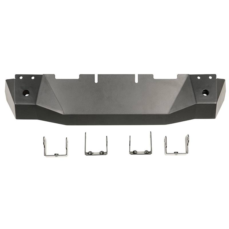 Skid Plate, Front, 18-21 Jeep Wrangler JL, 20-21 JT The heart of the Rugged Ridge Front Bumper Skid Plate is anincredibly strong body stamped from 4mm thick steel plateand features a unified fold-and-weld construction to deliverfull protection to the factory crash bar and electronic sway bardisconnect components. Designed to work with Rugged RidgeArcus, Spartacus and HD Series bumpers, the Front Skid Plate helps provide a morefinished overall appearance to the vehicles front end. With a durable light-texturedpowder coat finish that guards from rust and corrosion, it blends beautifully withfactory trim and aftermarket components.