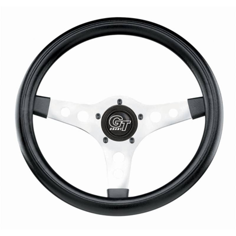 GT Sport Steering Wheel; 13 in. Diameter; 3 1/2 in. Dish; Black Foam Hand Grip; Brilliant Chrome 3-Spoke Design;