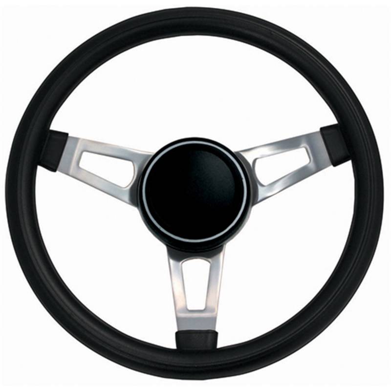 Classic Series Nostalgia Steering Wheel; 15 in. Diameter; 2 1/2 in.; Black Foam Grip; Nickel Plated 3-Spoke Design; Includes Horn Button PN[5699];