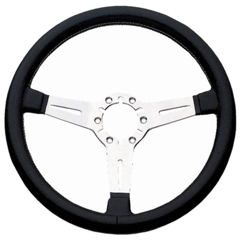 Classic Series Corvette Steering Wheel; 14 in.; Direct Bolt-On Replacement; Black Leather; Silver 3-Spoke Design;