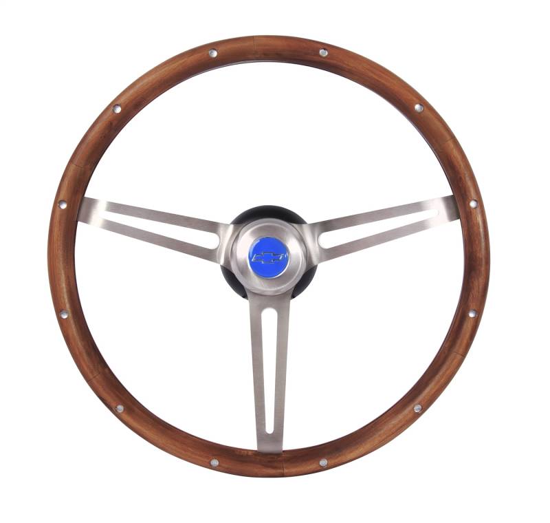Classic Series Nostalgia Steering Wheel; 15 in. Diameter; Genuine Walnut Finish; Brushed Stainless Steel Slotted 3-Spoke Design;