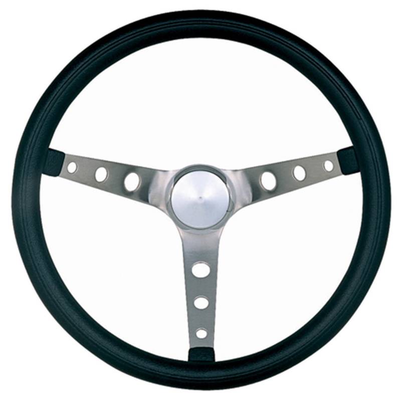 Classic Series Nostalgia Steering Wheel; 15 in. Diameter; 4 1/8 in. Dish; Black Foam Cushion Grip; Brushed Stainless Steel 3-Spoke Design;