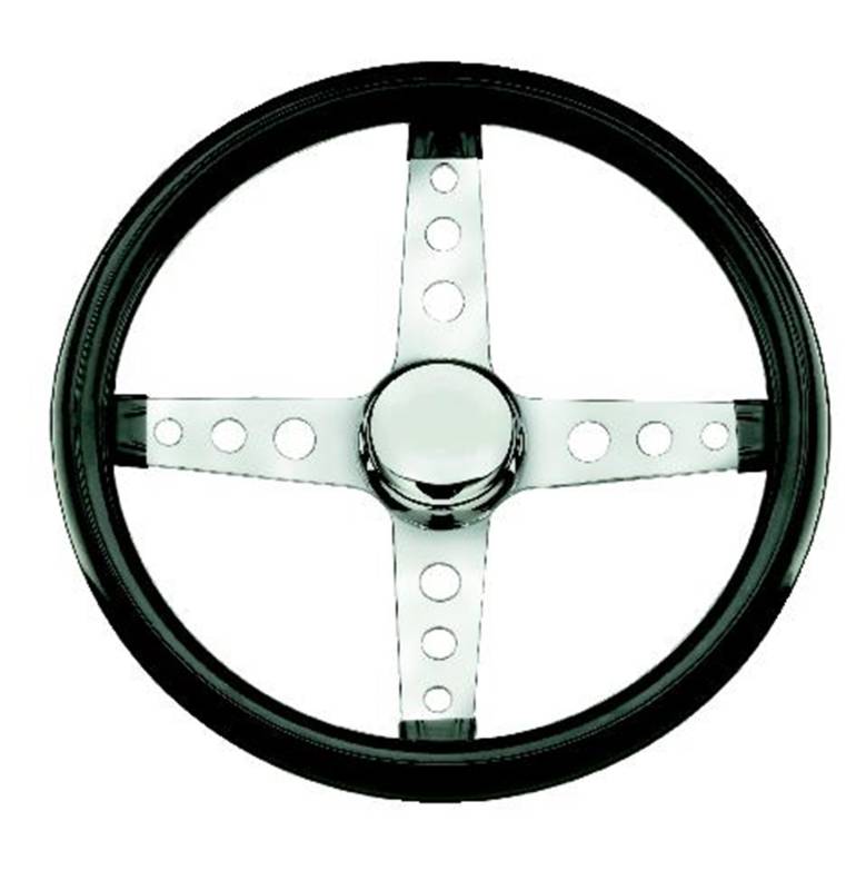 Classic Series Cruising Steering Wheel; 13.5 in. Diameter; 1 3/4 in. Shallow Dish; Black Gloss Vinyl Cushion Grip; Chrome 4-Spoke Design;