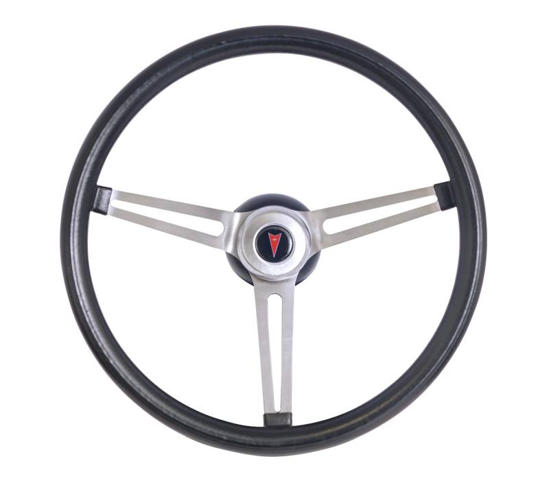Classic Series Nostalgia Steering Wheel; 15 in. Diameter; Black Foam Cushion Grip; Brushed Stainless Steel 3-Spoke Design; For Use With Pontiacs;