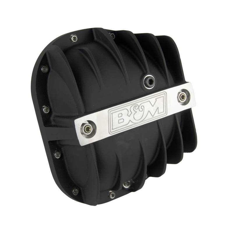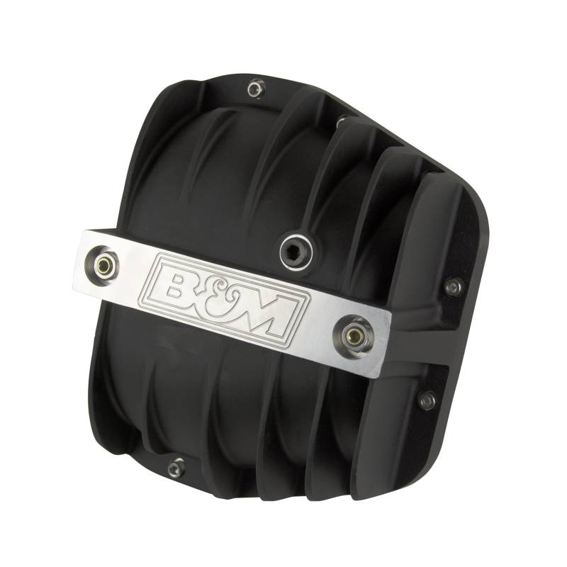 Our engineers designed the line of Hi-Tek differential covers to not only look good but address a number of weaknesses of the factory-stamped steel covers. First, they started by constructing the covers of thick A356.0-T6 aluminum, which dissipates heat much faster than the factory steel unit keeping the fluid temperature lower under high-stress loads vs. a steel cover. Then for added durability, we added a reinforced center bar for extra strength along with load bolts to help prevent bearing cap deflection under severe loads. The internal shape of the cover retains the smooth round back internally to help keep the fluid flow going over the ring gear to properly lubricate the gears and bearings. Additional features include a magnetic drain plug for catching ferrous metal particles, MIL-Spec (MIL-A-8625) black anodized finish, machined B&M logo, and all necessary hardware and easy-to-follow detailed instructions for a quick and simple installation you can do at home. Note: Gasket not included. Refer to the ID guide and measurement diagram for specifications.
