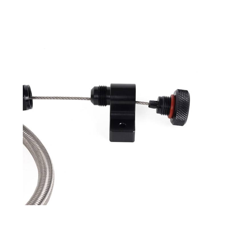 The B&M Locking Transmission Dipstick was designed to allow for a quick and easy check of the automatic transmission fluid level and fluid quality by the vehicle owner/operator without having to go to the dealership. Fits 2010-2023 Ford F-150 trucks with the 6R80, 10R80, 4R70E and 4R75E transmissions. Constructed of billet stainless steel fittings, steel braided hose, and black mil-spec anodized aluminum 6061-T6 cap and bracket, this rugged unit allows for both cold and warm fluid level checks and is meant to be installed in the vehicle and locked into place. Additional features include a billet locking cap with a "sure-grip" knurled finish for easy handling and the B&M logo milled in the top of the cap, showing everyone you added a quality product and that you take care of you're vehicle. Notes: Fits 2011-2014 Raptor and 2017-2023 Raptor trucks.
