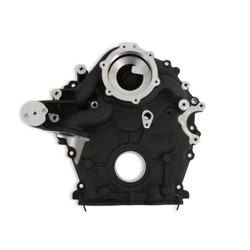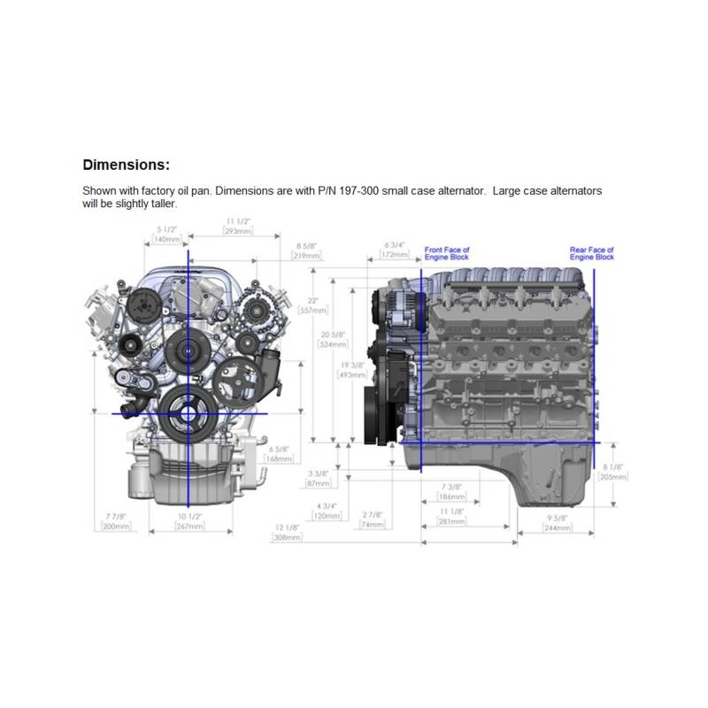 Holley's high-mount accessory drive has everything pulled up and in tighter than other options. The patent pending accessory drive incorporates the timing cover, water pump, and alternator and can also be configured with A/C and/or P/S if desired. This system works with the factory crank pulley, as well as aftermarket damper/pulleys.\nThe accessory drive components in this system can be configured in several different ways. For example, there are alternator options available for different performance and electrical demands. Also, deleting the A/C and/or P/S are options. This "base kit" supplies all but the components with options. If you purchase a "Holley complete kit," all these options are already chosen for the most common, cost-effective combination.