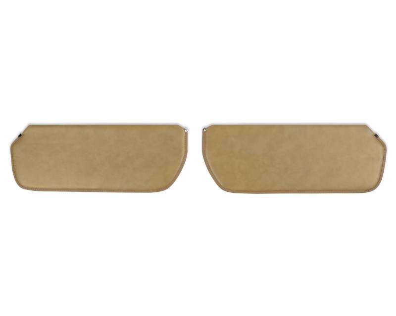 If you're tired of your busted or flimsy sunvisor hanging loose and not doing its job, grab a brand new pair from BROTHERS Trucks. These original replacement sunvisors are covered with foambacked Madrid vinyl and are a cost effective way to dramatically improve the overall look and feel of your vehicles interior. These sunvisors are a reproduction of your vehicles OEM visor utilizing factory attachment points, fit and finish.