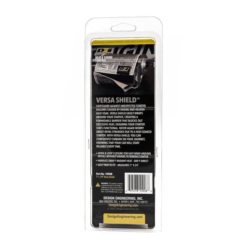 Versa Shield 7in x 24in Versa-Shield was designed to protect starters from potential failure caused by under hood heat soak conditions. Constructed using an aluminized heat reflective material backed with a hi-temp rated glass fiber insulation barrier, Versa-Shield is capable of reflecting radiant heat up to 2000F. Simply wrap desired component with Versa-Shield and trim excess material. Edges attach to itself using a hook & loop edge closure design. In most cases there is no need to remove component when installing Versa-Shield. Wit'stands 500 Degrees F Of Direct Heat/2000 Degrees Radiant Edges Attach To Itself With Hook And Loop Closure Design Universal-Trim Length To Size Can Easily Be Removed For Shows No Need To Remove Starter For Installation In Most Cases