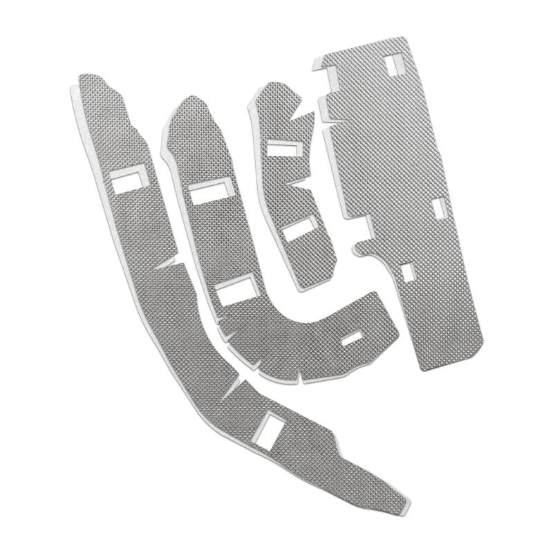 Heat Shield Liner, HD Touring 2017-2025 Increased riding comfort while maintaining the stock look. Heat from the exhaust system can become uncomfortable, especially riding in slow traffic. This issue really comes into focus for those with shorter legs. Not wanting to disrupt the attractive lines and appearance of the exhaust, DEI's Heat Shield Liner Kit insulates the outer heat shield, without disturbing the looks of the bike. Each piece is precision cut to fit in-between the exhaust pipe and the heat shield, blocking heat transfer and lowering the surface temperatures of the outer shield. Easy to install, with no permanent modifications needed. The Heat Shield Liners are dual layer constructed of Aluminum and our proprietary Dura 2000 insulating material and offer over a 60% reduction in heat. Features CNC cut for a perfect fit Completely hidden when installed Advantages Durable long-lasting materials Simple installation No smoke or odor Benefits Reduces heat radiating from the exhaust system, giving the rider and passenger a cooler ride. This is especially noticeable when the rider stops and puts their feet on the ground. Note: Heat Shield Liners install inside the head pipe heat shields. Please pay attention to what brand head pipe you are running not the brand of the mufflers. Kits are compatible with black or chrome head pipes. Reduces Heat Radiating From The Exhaust System Giving The Rider And Passenger A Cooler Ride This Is Especially Noticeable When The Rider Stops And Puts Their Feet On The Ground CNC Cut For A Perfect Fit Completely Hidden When Installed