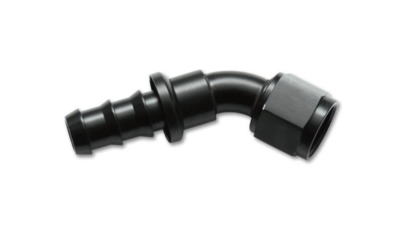 Push-On 45 Degree Hose End Fitting; -8AN; 6061 Aluminum; Black Anodized;