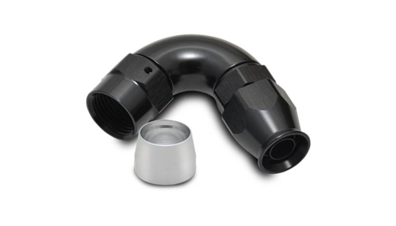 120 Degree High Flow Hose End Fitting; -8AN; 6061 Aluminum; Black Anodized; For PTFE Lined Hose;