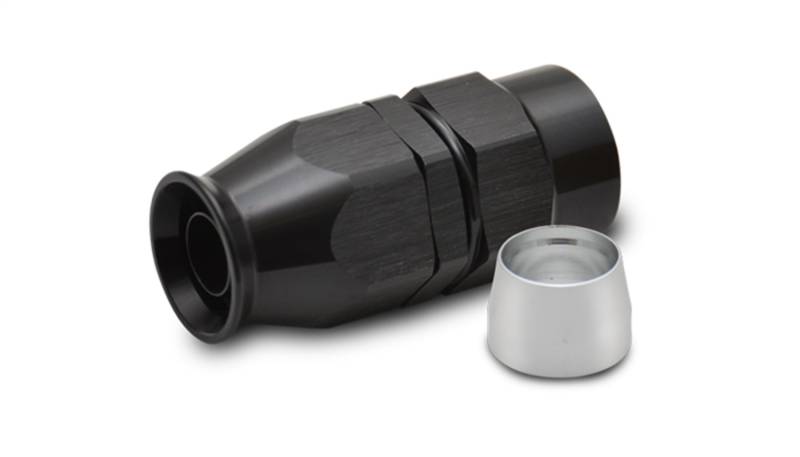Vibrant's offering of non-swivel High Flow Hose End Fittings, designed exclusively for use with our offering of PTFE lined flex hose, deliver the type of quality, leak-free reliability and incredible ease of assembly that industry professionals will appreciate. Now also available in -12 AN. These CNC Machined 6061 Aluminum Alloy Hose Ends feature a full flow design and are optimal for use in race fuel systems as well as Nitrous, Cooling, Oil, Power Steering and Coolant (not suited for brake and hydraulic line applications). Each of these Hose Ends include an Aluminum olive that compresses to the PTFE liner for simple, leak free assembly. Available in Black Hard Anodized finish only.