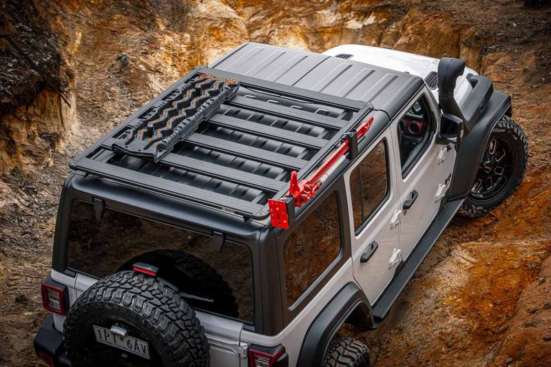 BASE Rack Kit Using the proven internal frame for ARB's classic style roof racks as the basis, a BASE Rack specific mount kit has been developed for the Jeep Wrangler JL Unlimited fitted with the factory hardtop. Internal bracketry is carried over from the previous kit with BASE Rack specific blade brackets developed to suit the 61 x51 PN 1770020 BASE Rack. The BASE Rack takes accessories and cargo loading to a whole new level of simplicity, speed and personalisation. With a choice of sizes, accessories and attachments, you can truly Make It Your Own. By incorporating a dovetail extrusion around both the full perimeter and along each edge of the internal beams, the BASE Rack provides endless mounting and attachment options. Adding, removing and repositioning accessories and roof loads is quick and easy with the BASE Rack's dovetail system, making it easier to install and remove individual items without disturbing the whole load. Plus, unlike traditional roof rack channels, the BASE Rack dovetail extrusion won't collect dust and debris. Each BASE Rack accessory or fixture attaches to the rack with a simple clamp mount, including larger hardware such as Hi-Lift Jack mounts, rollers, recovery boards and even a BASE Rack custom light bar. Extruded Aluminium Beams Feature Rigid Internal Bracing Fully Welded Construction (Excluding Corner Caps) Fully Assembled, Ready-to-Fit Mount Brackets Integrit Textured Black Powder-Coat Finish Strength Through Design Requires No Additional Cross Bars
