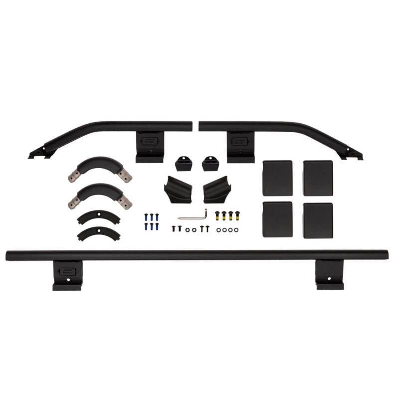 BASE Rack Front 1/4 Guard Rail The quarter guard rail attaches quickly and easily to the dovetail extrusion around the BASE Rack's perimeter with some additional fixing points at the rack corners. Quarter Rails allow for ample storage and load security at the front of the rack. Finished in Integrit textured black powder-coat. This finish creates a durable, corrosion-resistant, scratch-resistant surface allowing you to easily clean off debris while the black color adds a sleek modern look to your vehicle. Cast aluminum corner caps attach to fully welded cross rail or side rail assembly. Cast aluminum upright clamps. Fastened to BASE Rack assembly with a combination of torx M6, M8 and nyloc nuts. Quarter rails allow for ample storage and load security at the front of the rack.