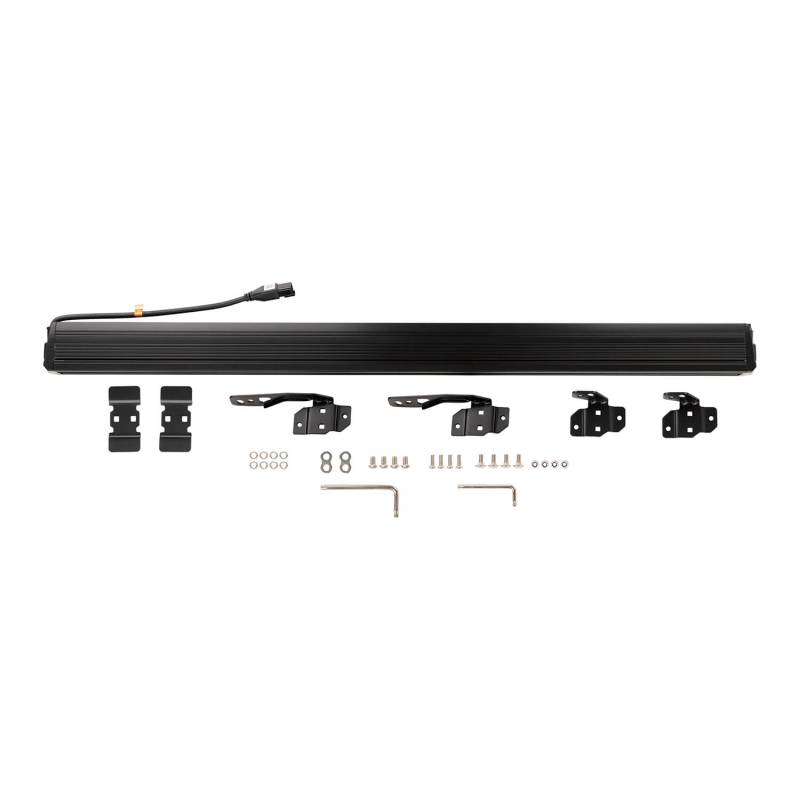 Slimline Roof Rack Light Complementing the sleek design of the ARB BASE Rack, ARB has added to its family of driving lights a dedicated roof rack mounted light bar. Using a uniquely tuned reflector design to limit reflection off bar work and the vehicle, this slimline bar pumps out a competitive 1 lux @ 2388ft with up to 196ft of spread. Manufactured from extruded aluminium with high pressure die cast aluminium caps, this heat dissipation chassis provides great longevity to the LEDs and allows for a couple of hits from low hanging branches while out on the trails. The body is fully powder coated in a stealth black finish, with a light tint added to the polycarbonate lens providing a non-obtrusive look. The unique half cup reflectors throws the light down the road where needed, providing a defined beam line that has been tuned into a spot/flood ?combo configuration. Using the mounting system build into the ARB BASE Rack allows the light to be setup in minutes with different mounting options in front of the rack and below the rack which provides additional protection and a hidden look. Unique Reflector Design To Provide Optimum Distance Reflector Design Limits Light Reflection Off Hood Or Bumper Combo Beam Technology Gives Excellent Mid- To Long-Range Spread Virtually Indestructible Polycarbonate Lens