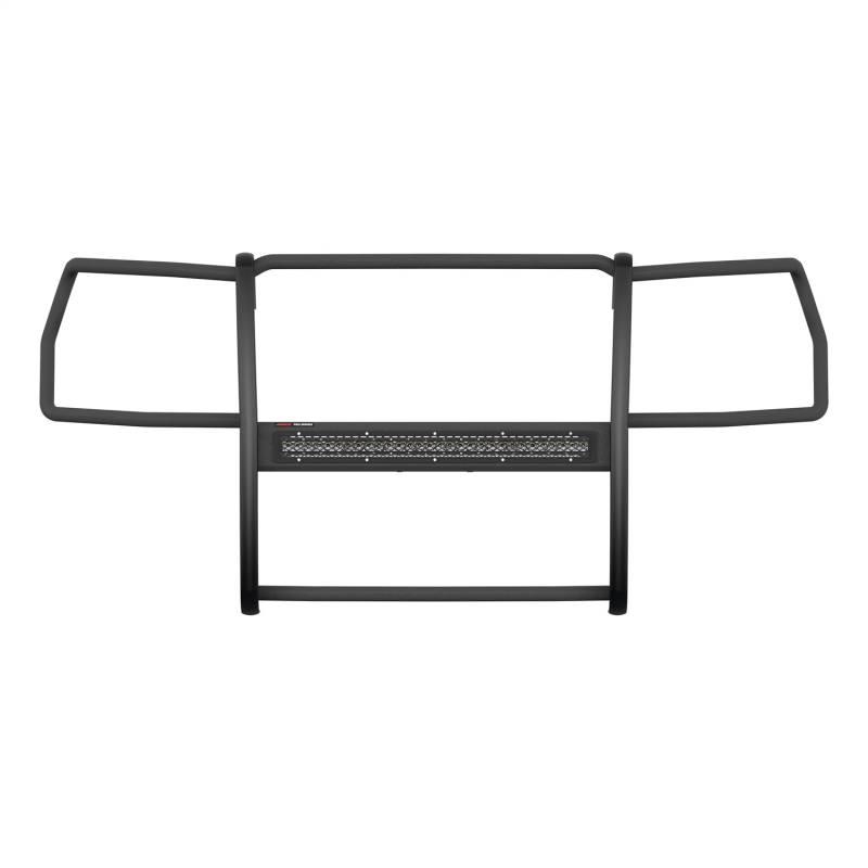 Pro Series Black Steel Grille Guard with Light Bar, Select Chevy Silverado 1500 The ARIES Pro Series grille guard is unlike any other grille guard or brush guard on the road today because of its patented center crossbar. The ARIES Pro Series grille guard has a unique center crossbar that houses an LED light bar, allowing you to truly set your truck apart from all others. Rather than using a set of light clips or forcing you to drill holes into the frame, the aerodynamic crossbar of the Pro Series grille guard is the light bar housing itself. It uses a 30" slotted channel bracket to mount the included 30" LED light bar #1501264. The bracket can also accept other single-row light bars (some 30" light bars may not fit). The crossbar mount can also articulate, allowing you to position the light beam at any angle you prefer. Integrating the channel mount into the crossbar housing also keeps the light bar protected from the elements. To further stylize your truck, the Pro Series grille guard also comes with an interchangeable grille guard cover plate. Included with each grille guard is a black mesh cover plate that easily bolts on and provides added security for your aftermarket lights. The mesh cover plate can be swapped out with other cover plate options, including five different styles and two finishes. Solid construction should be an essential feature of any grille guard, and the Pro Series grille guard is more than qualified. It has a one-piece design of 1/4" thick welded plates and 1-1/2" mandrel-bent carbon steel tubing. We also finish each Pro Series grille guard in a highly durable, dual-layer E-coat and textured black powder coat, giving it resilience to rust and scratches. This unique finish also helps hide minor scratches and grime to maintain a clean look. ARIES Pro Series grille guards are made vehicle-specific for seamless integration with the factory bumper and an easy, no-drill installation. This grille guard fits select model years of the Chevrolet Silverado 1500 (see application info to verify fitment). Patented crossbar houses a single-row LED light bar Interchangeable cover plate protects light bar and offers easy customization Grade-A LED chips offer 14,800-lumen, combo beam pattern Light bar features waterproof aluminum housing and IP68-standard breather Fitted with a strong, waterproof wiring harness for a reliable connection