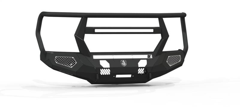 The next Evolution in Winch bumpers is here, with Road Armor's Evolution Series. Style is king and quality is the standard utilizing the Evolution Series your truck will stand out. with a bold new stature. Available in pre-runner with or without reaper bar, and in full guard. Your trail on night runs is illuminated by integrated light mounts for a single-row 30 in. light bar, and end pods that sport options for either a single 4 in. light bar or dual 3 in. cubes, all secured by our laser-cut Hyve mesh and accented with integrated 8 in. LEDs. Never ones to forego safety and function over style, the Evolution Series supports factory sensors, is built with high-strength American steel, and are made road-ready with our 9-stage powder coating process.