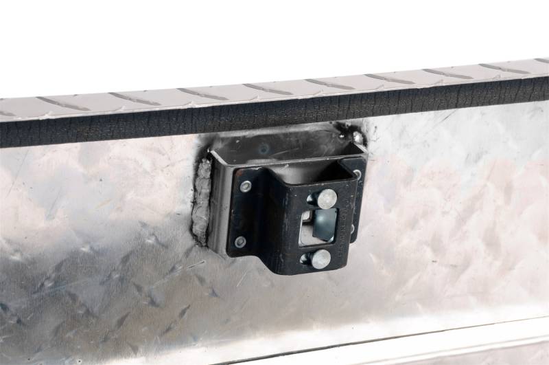 Specialty Series Triangle Trailer Tool Box; 0.056 Brite-Tread Aluminum; Volume 3.71 cu. ft.; L 34 in. Back; L 16 in. Front; W 14.25 in.; H 18 in.;