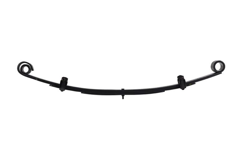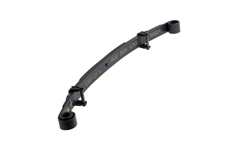 Front Leaf Spring Part of ARB's integrated 4X4 suspension systems, Emu Dakar leaf springs are engineered to provide optimum ride performance irrespective of the operating conditions the vehicle's suspension is required to work under. Numerous spring options are available to suit a multitude of applications, allowing you to set your vehicle up for recreational or commercial purposes. Feature packed, a set of Emu Dakar leaf springs matched to a set of Old Man Emu 4X4 shock absorbers will deliver vastly improved ride, handling and load carrying capability. Draw-tapered and diamond cut leaves Bolted leaf clamps allow installation of anti-squeak nylon liners Fully scragged to reduce the risk of sagging Load tested to ensure the spring meets the required specification Military wrap design provides added safety
