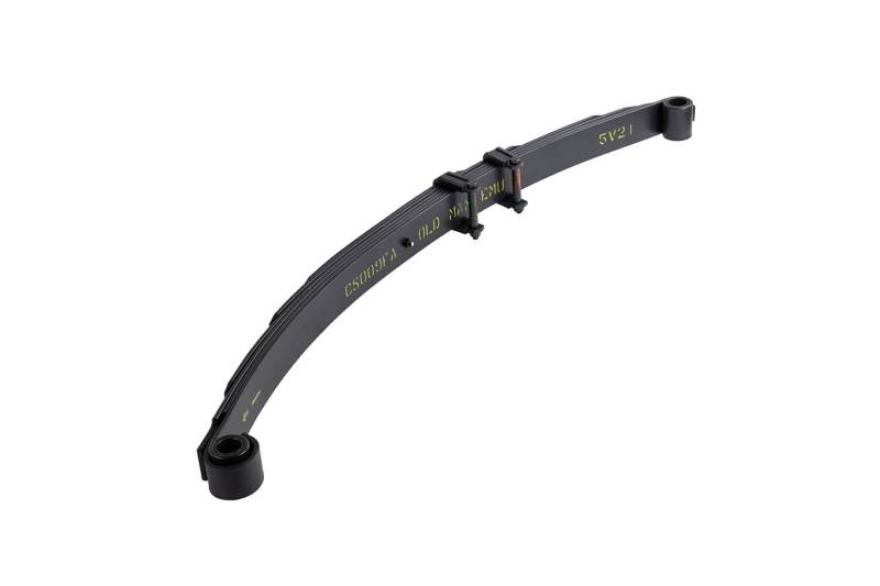 Front Leaf Spring Part of ARB's integrated 4X4 suspension systems, Emu Dakar leaf springs are engineered to provide optimum ride performance irrespective of the operating conditions the vehicle's suspension is required to work under. Numerous spring options are available to suit a multitude of applications, allowing you to set your vehicle up for recreational or commercial purposes. Feature packed, a set of Emu Dakar leaf springs matched to a set of Old Man Emu 4X4 shock absorbers will deliver vastly improved ride, handling and load carrying capability. Draw-tapered and diamond cut leaves Bolted leaf clamps allow installation of anti-squeak nylon liners Fully scragged to reduce the risk of sagging Load tested to ensure the spring meets the required specification Military wrap design provides added safety