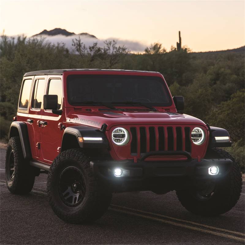 This RIGID 360-Series LED Fog Mount Kit fits the 2018-2021 Jeep Rubicon/Gladiator. The optimized beam patterns of the 360-Series round LED lights project up to 3,100 raw lumens and are protected by an aluminum housing. Featuring a blacked-out circuit board, prominent RIGID branding, and limited lifetime warranty makes them the most robust and useful round lights on the market. The OE fog mount kits are adjustable for proper light aiming, uses OEM mounting hardware, and offer a seamless fitment. These fog mount kits include the 360-Series 4 inch street legal SAE J583 Compliant LED fog lights. Choose between white or selective yellow for harsh weather conditions. RIGIDs 360-Series OE fog mount kits makes it easier than ever to Own The Night. Professional installation recommended.