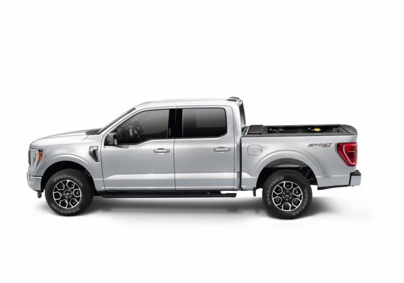 E-Series - 15-20 F-150 5'7" When it comes to protecting your truck and gear, only the best will do. The top of the line E-Series electric retractable tonneau is the ultimate choice in truck bed cover convenience and security. Proving itself every day on the road and on the job, the E-Series tonneau cover is trusted by truck owners around the world for its premium, American-made quality, versatility, and craftsmanship. With the push of a button, a commercial-grade electric motor automatically opens and closes the tonneau cover, allowing fast and easy access to the contents of your truck bed. The E-Series tonneau cover opens or closes in seconds, with one very important upgrade: the ultra-convenient key fob. We never compromise and neither should you. Roll-N-Lock's E-Series tonneau cover outlasts and outperforms the competition due to the high quality of its tough, powder-coated aluminum construction and unique, theft-resistant hinge design. With its never-before-seen level of truck bed security and rugged commercial motor, this is the cover to beat all covers. You should expect more from your tonneau cover; get the most with a Roll-N-Lock E-Series Retractable Cover. Durable commercial motor for long-lasting operation Pressure sensitive stop; stops in place upon contact with an object in the bed Recessed drain fittings to ensure rapid and complete drainage Most compact housing of all retractable covers, preserving valuable truck bed space Key fob allows you to open, close, stop and lock anywhere along the length of the bed
