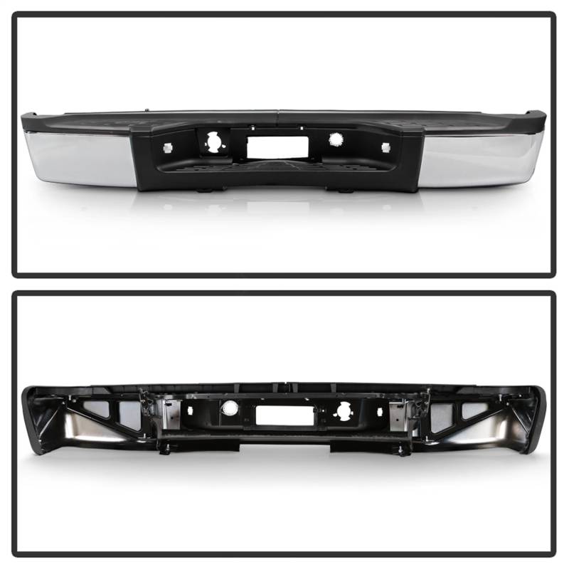 Steel Rear Bumper; Chrome; w/Dual Exhaust; Does Not Fit w/Park Assist Sensor Hole And Dual Rear Wheels; Incl. Brackets Hardware And Step Pads;