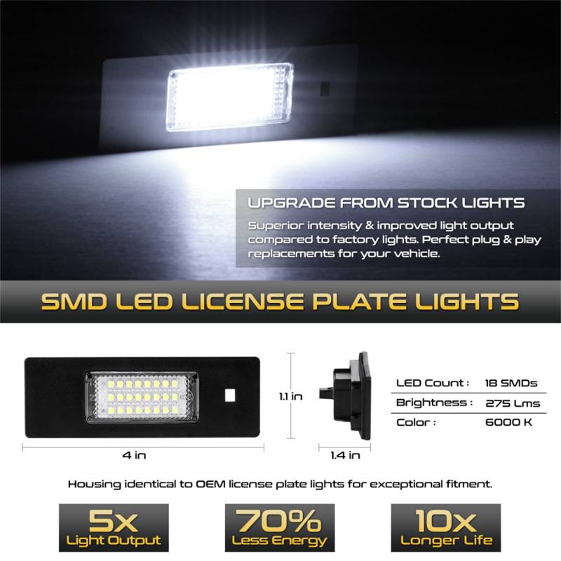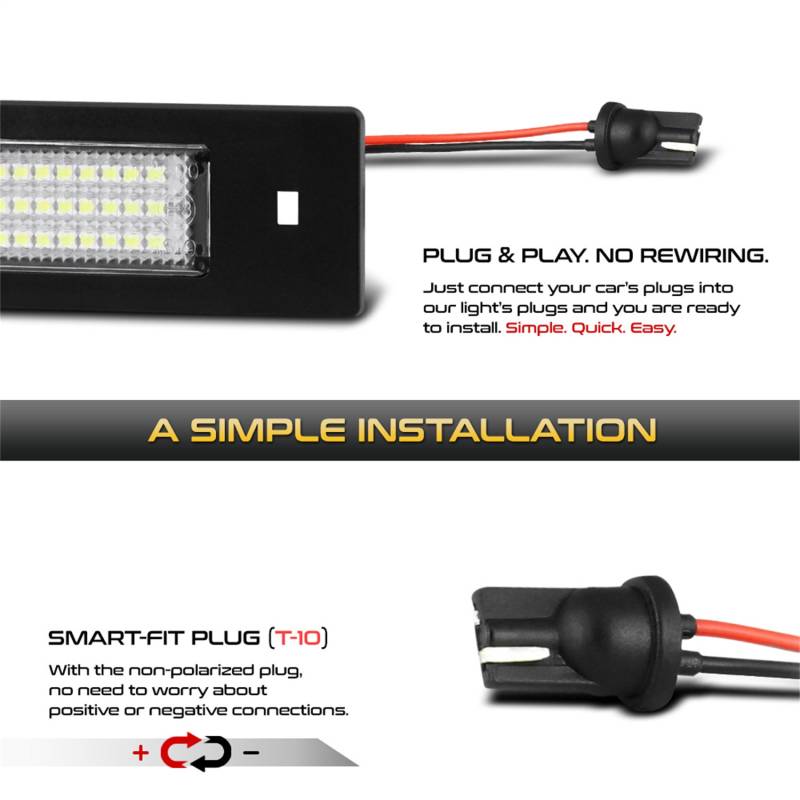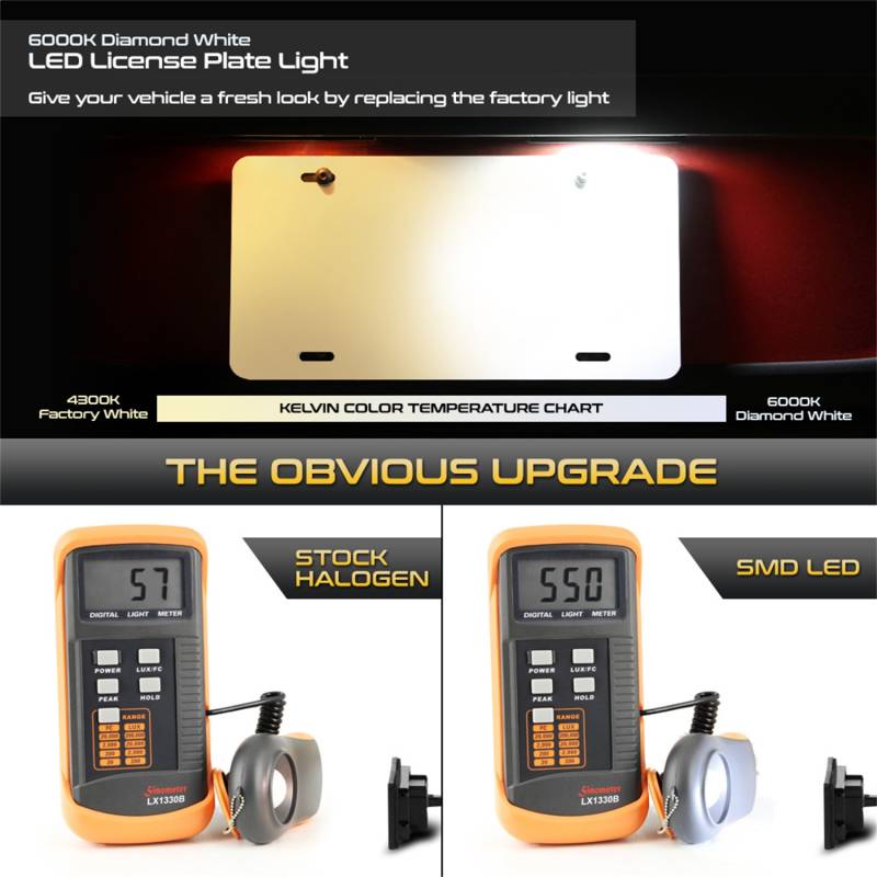 XTune License Plate Bulb Assembly Replacement; Pair; White 5500K; Connector; w/Built In LED/Ultra Bright Plug And Play Installation;