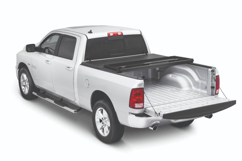 Hard Fold - 19-26 Ram 1500, w/o Rambox, 6'4" The Tonno Pro Hard Fold Tri-folding Tonneau Cover has an extremely tough all-aluminum underbody frame covered with our highest marine grade vinyl on top. This impact resistant cover offers maximum security and durability with easy installation and operation. The Hard Fold won't scuff or dent like other all-aluminum hard folding covers and is engineered with our patented design to hold up to the toughest environments. To open the Hard Fold, simply unclamp the EZ lock handles and fold the cover towards the cab. When you need to haul larger cargo, the nylon cab straps hold the cover in the partial open position. This cover comes completely assembled no drilling is required and installation time is less than 10 minutes. Heavy-Duty - Robust aluminum panels protected by a marine-grade vinyl overlay Easy Operation - Simply unclamp each EZ-Lock handles and fold Lightweight Panels - Panels are lightweight for ease of handling while durable enough to wit'stand 350 lbs (evenly distributed) Lifetime Warranty - Made in the USA and backed by TonnoPro for a limited lifetime