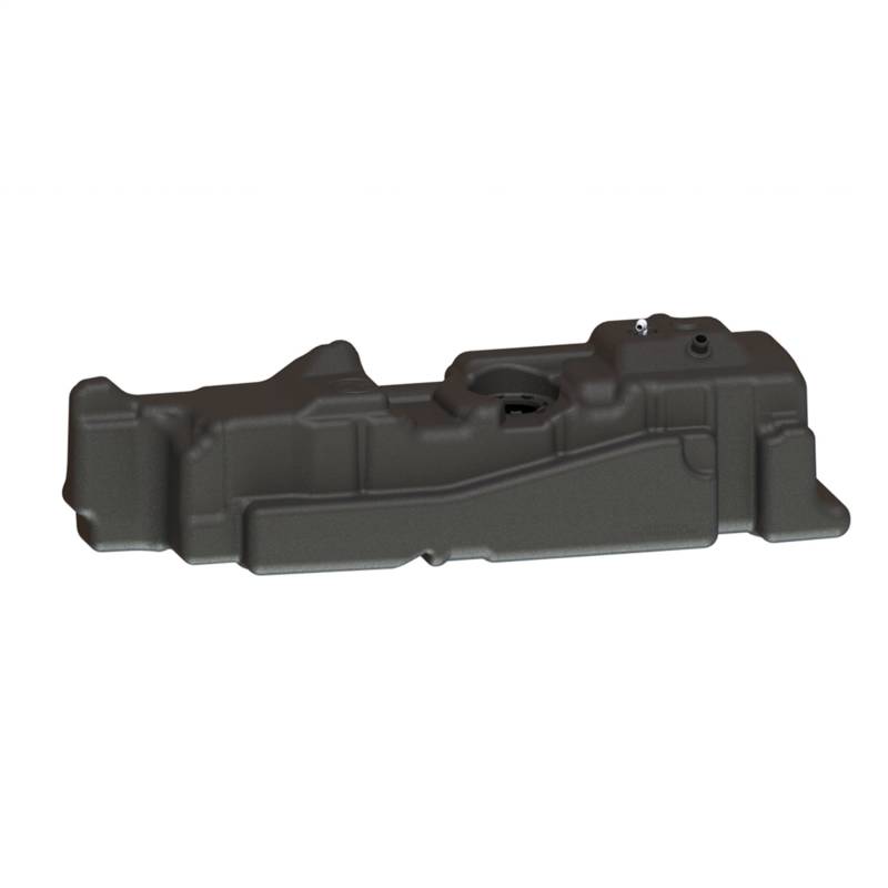 60 Gallon (227 Liters)*, extra capacity, extra heavy duty mid-ship, replacement tank for the ultimate in fuel range. Tank comes complete with black coated, galvanized or stainless steel, mounting straps. Tapered tank features exclusive low fuel trap design so most every gallon can be used, and is approximately only 2.5 in. deeper than the stock OEM tank. Tank hangs approximately only 1 in. below bottom of the stock fuel tank shield bracket (on vehicles so equipped). Very similar in appearance to original equipment tank. TITAN's Generation 6 tanks feature the TITAN Torque Ring(TM) OEM style sending unit mounting system for easy, positive installation. This new Ford tank is made of our famous military grade, cross-linked polymer (XLHDPE). It's at least in. thick and built to outlast all competitors. It's tougher than steel and more durable than aluminum. Like all fine TITAN(TM) products, this new design has undergone extensive testing. Our legendary products are so tough and well-proven that we back them with a Lifetime Warranty!+ No cutting, drilling or fabrication required for installation. Tank body is pre-marked with optimal location for sump installation of an aftermarket 'performance' fuel pump system.